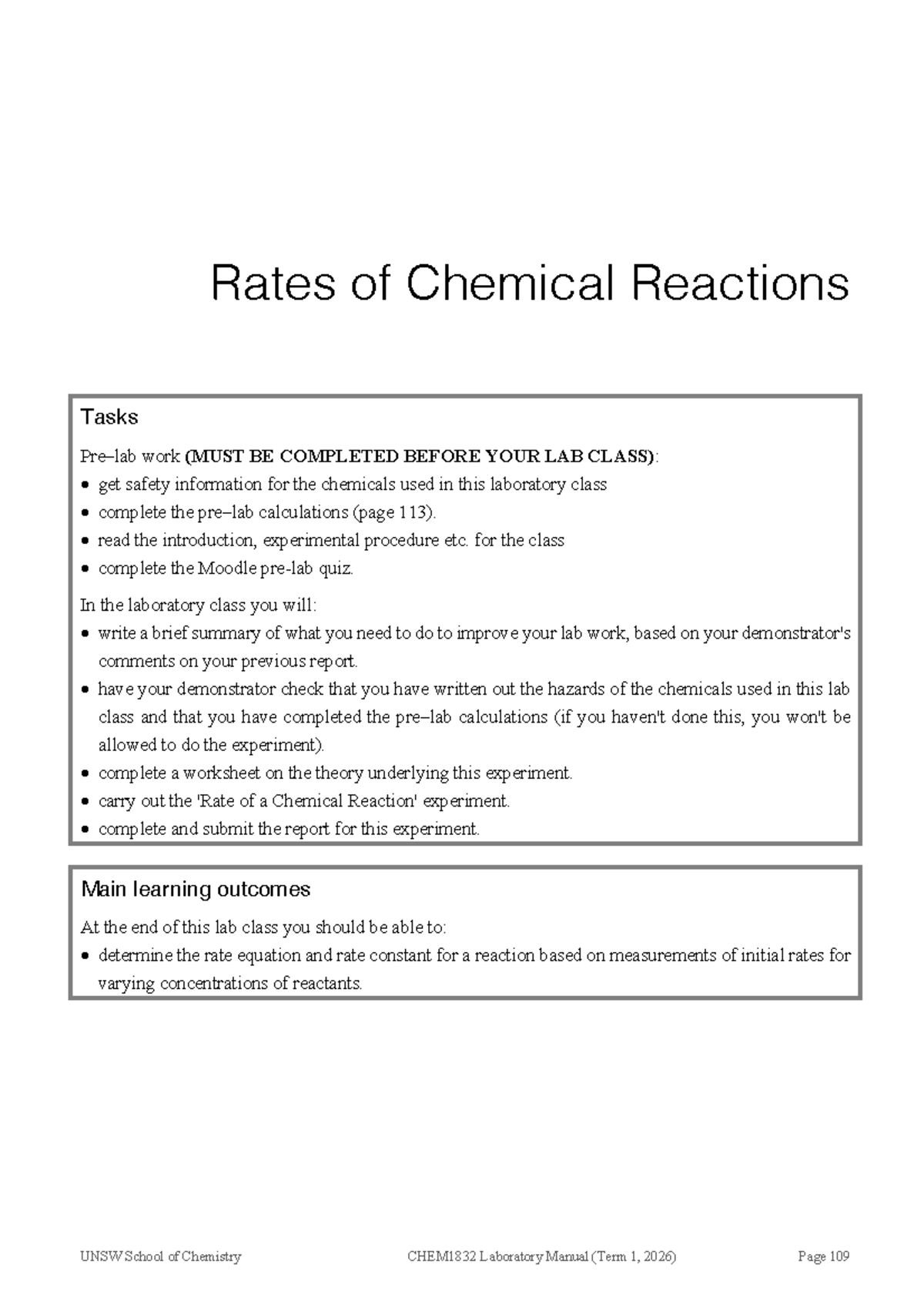 CHEM1832 Lab Manual: Rates of Chemical Reactions Overview - Studocu