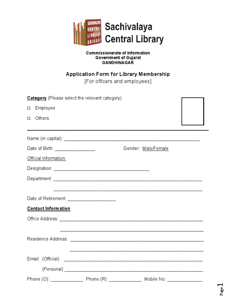 Application Form For Library Membership: (For Officers and Employees ...