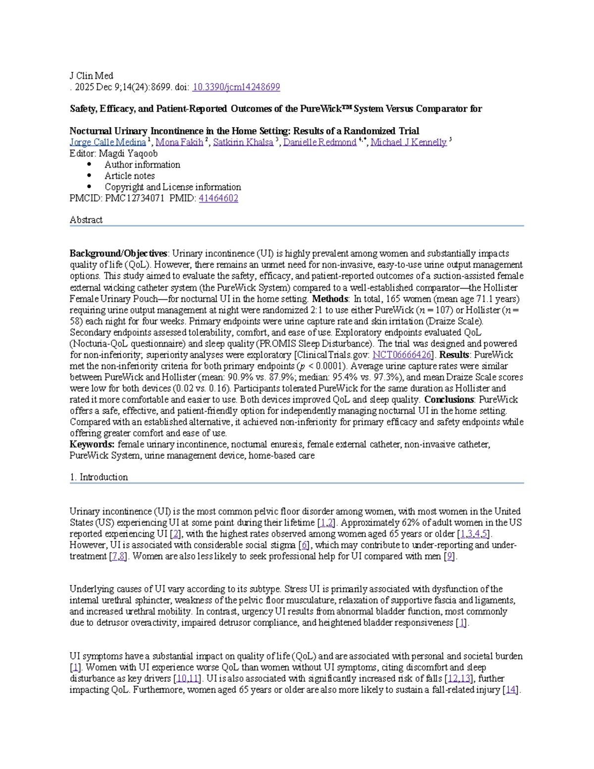 Safety and Efficacy of PureWick vs. Hollister for Nocturnal UI ...