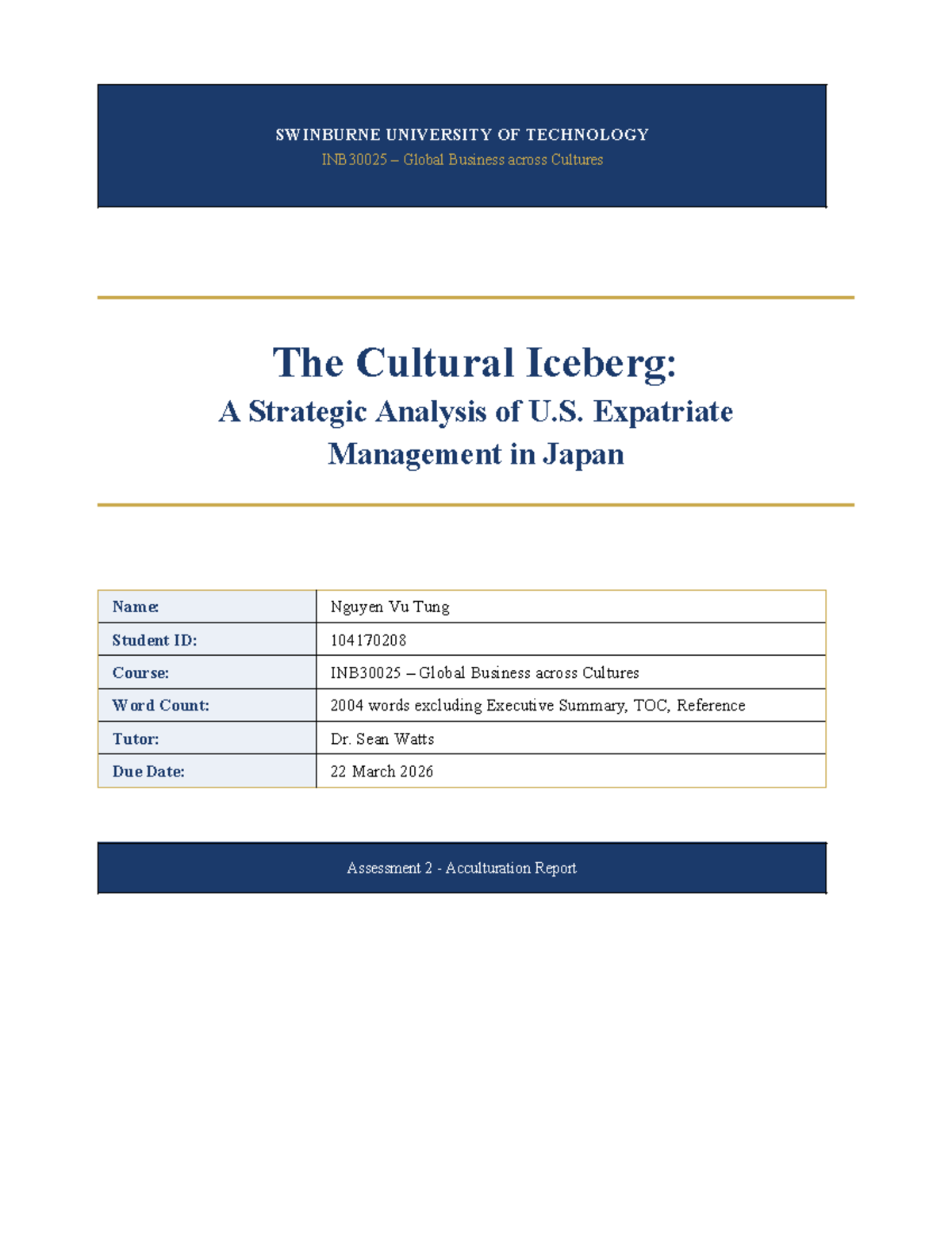 Acculturation Report: U.S. Expatriate Management in Japan - INB30025 ...