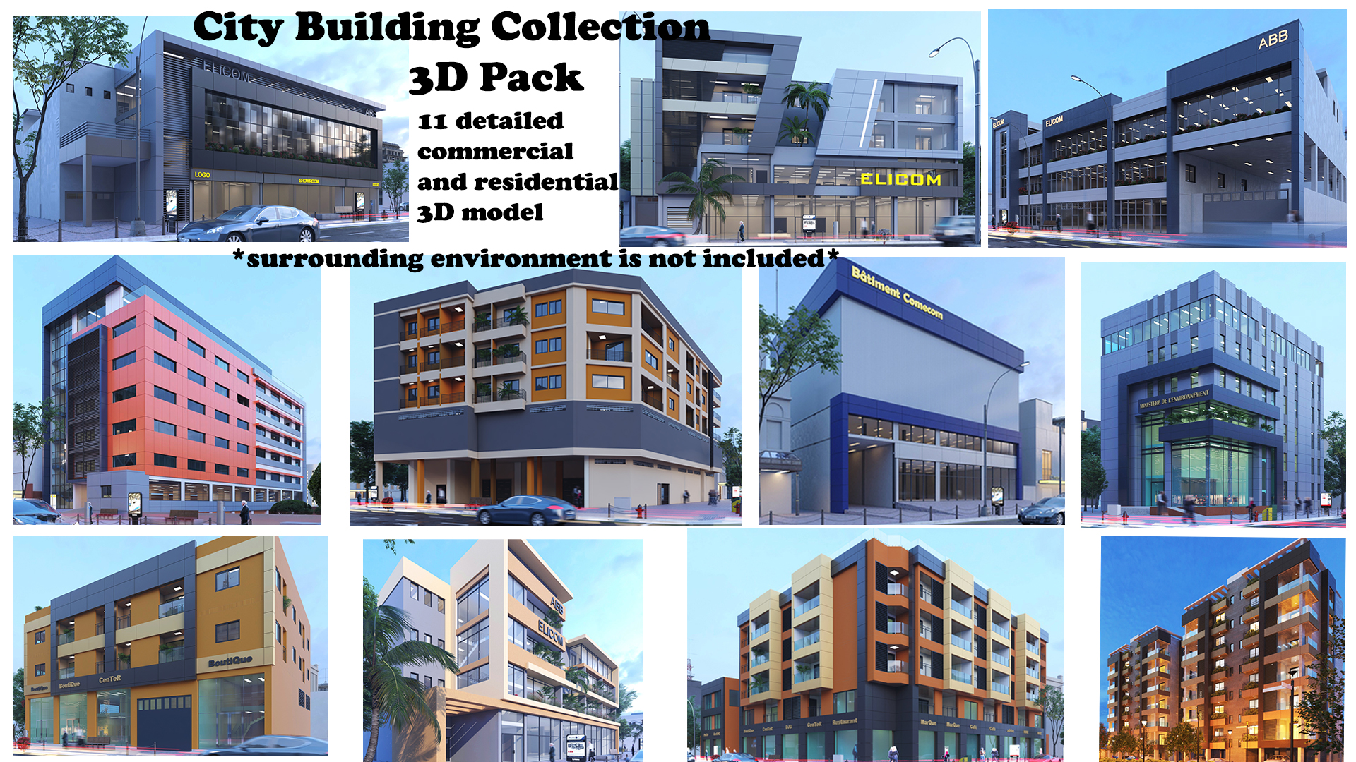 City Building Collection - Pack of 11 detailed commercial and ...