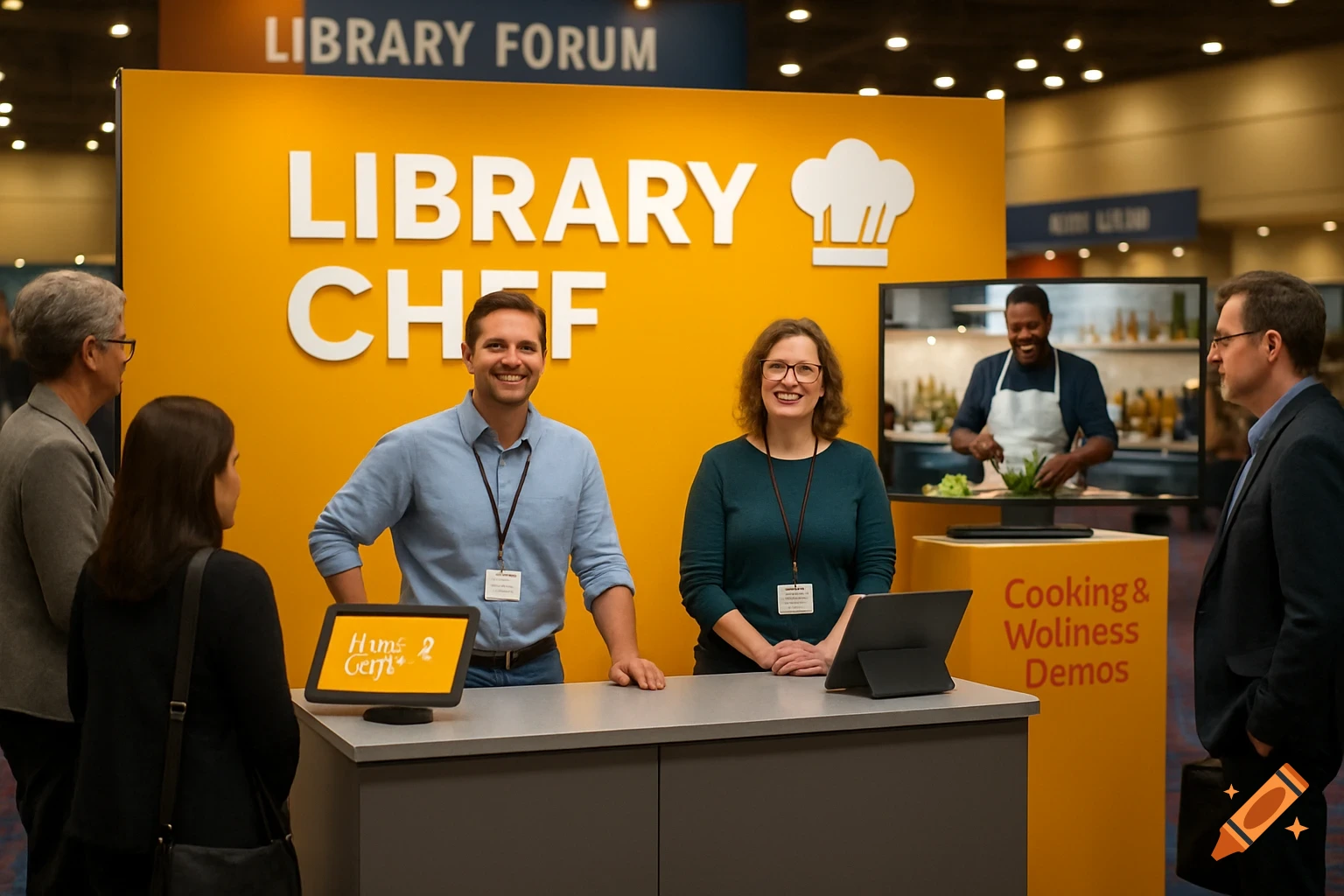 A Library Chef exhibition booth at a U.S. library forum. Two smiling ...