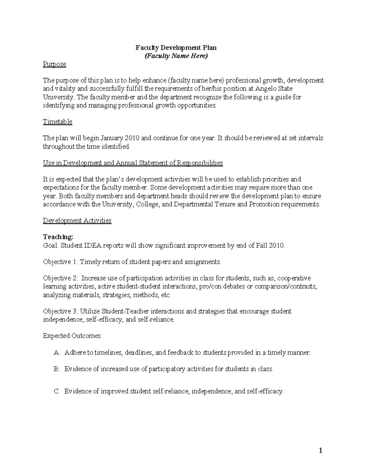 Faculty Development Plan - 1 Faculty Development Plan (Faculty Name ...