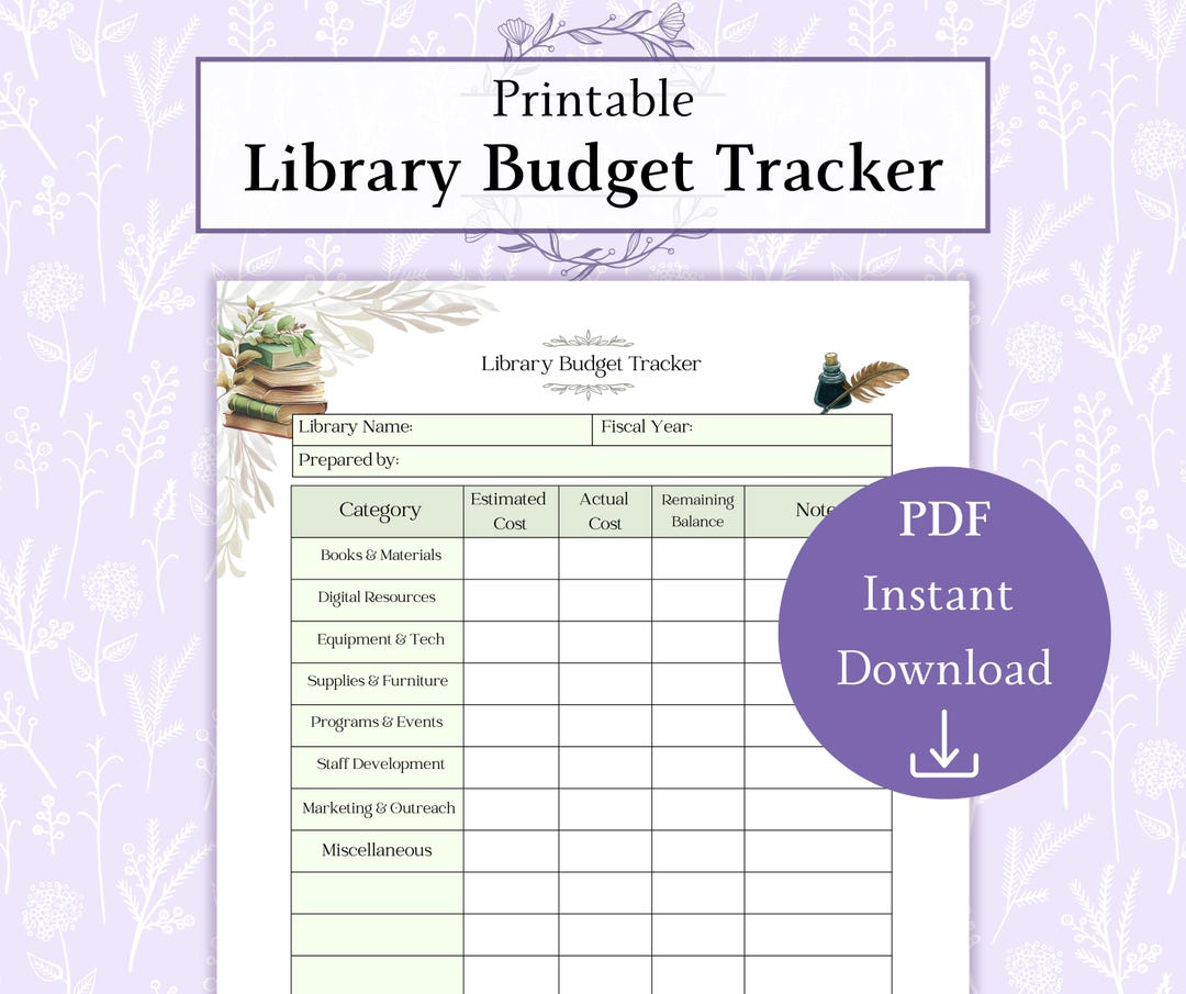 Library Budget Tracker Printable PDF | Librarian Expense Tracking Sheet ...