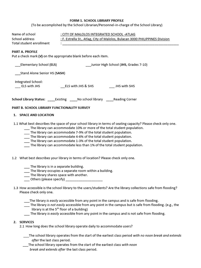 School Library Profile Template Survey Form | PDF | Libraries | School ...