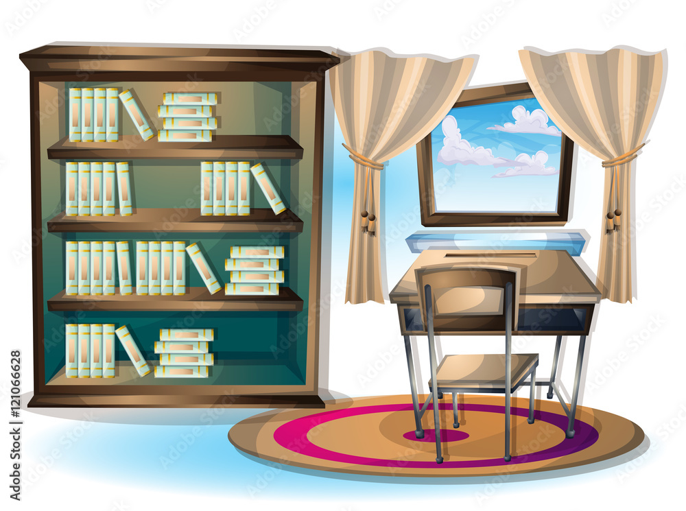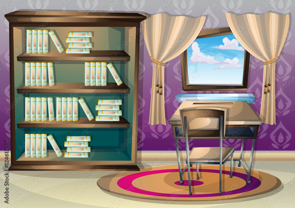 Cartoon Vector Illustration Interior Library Room With Separated Layers ...