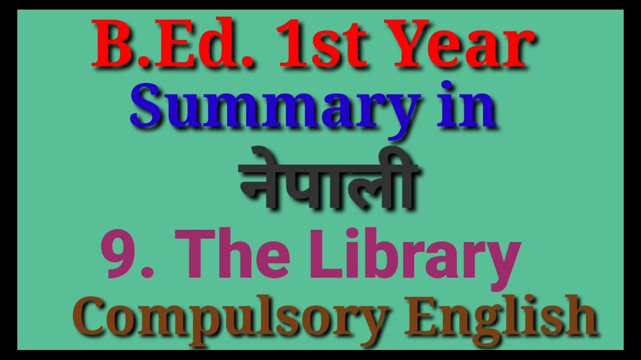 The Library || Summary with Question Answer || B.Ed. First Year ...
