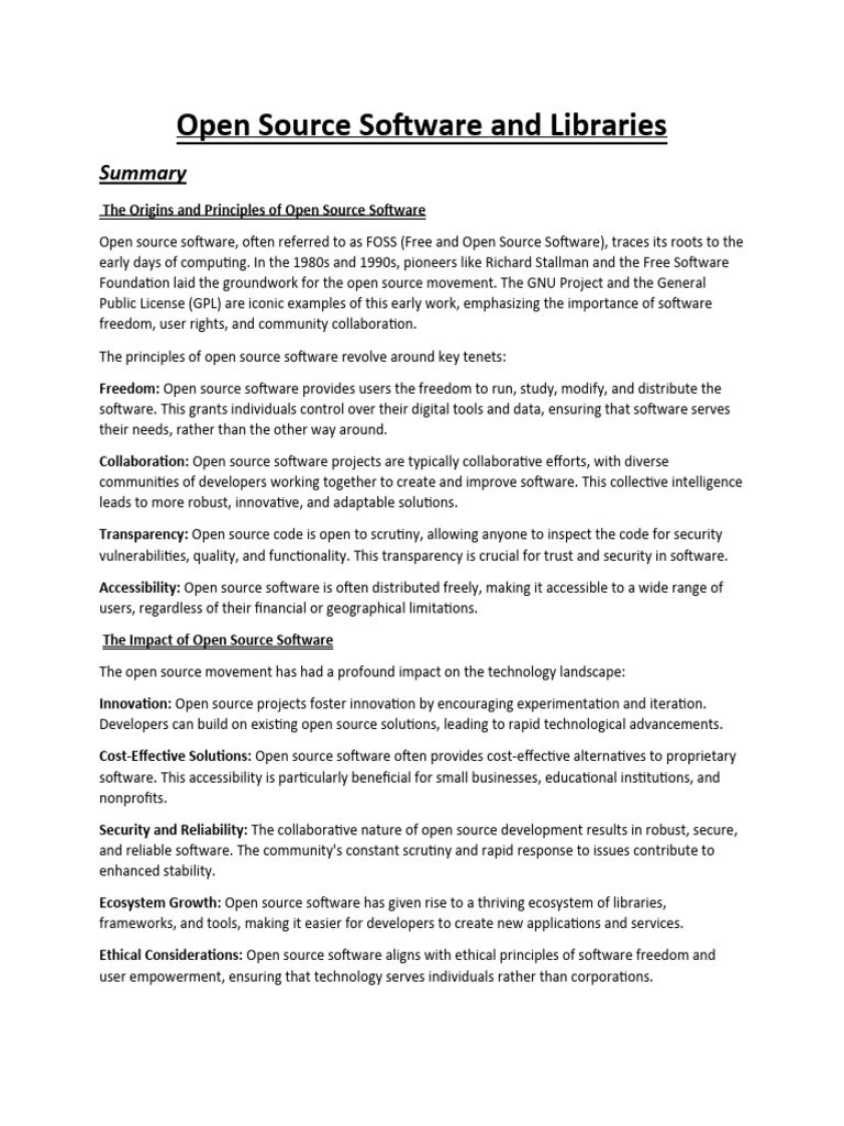Open Source Software and Libraries Summary | PDF | Open Source | Libraries