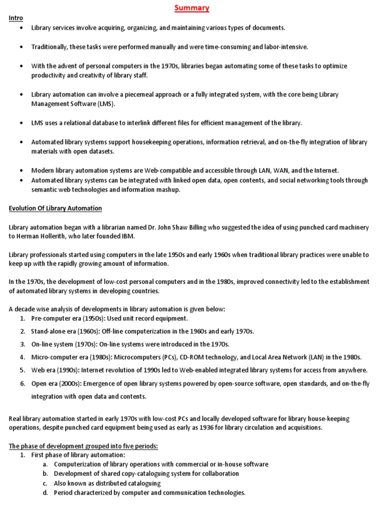 The Evolution of Library Automation: A Comprehensive Summary of the ...
