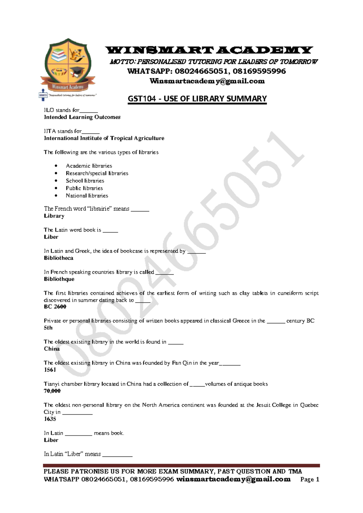 GST104 Use of Library Exam Summary and Key Concepts - Studocu