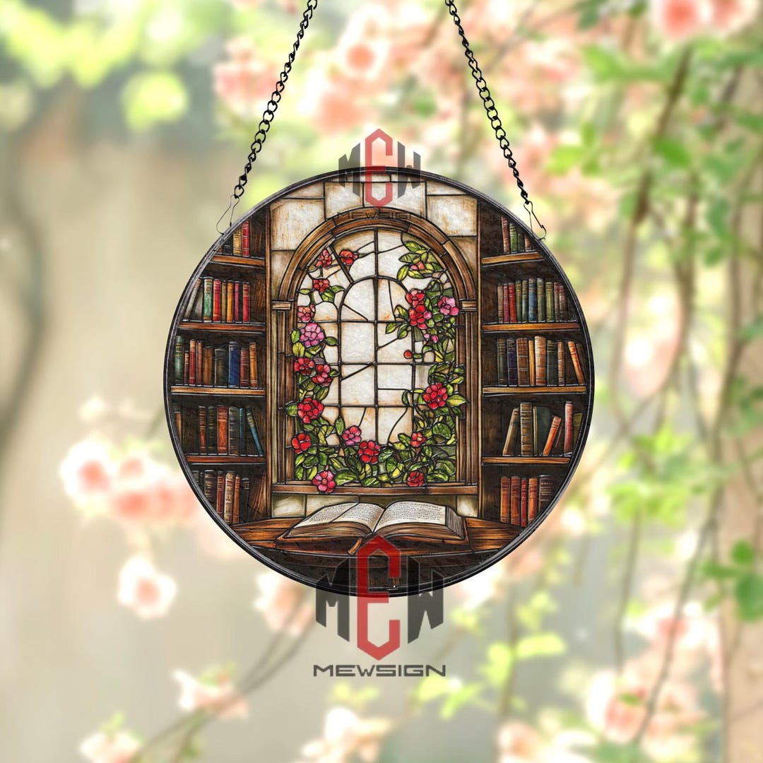Acrylic Library Window Hanging, Book Lover Gift, Stained Glass, Bookish ...