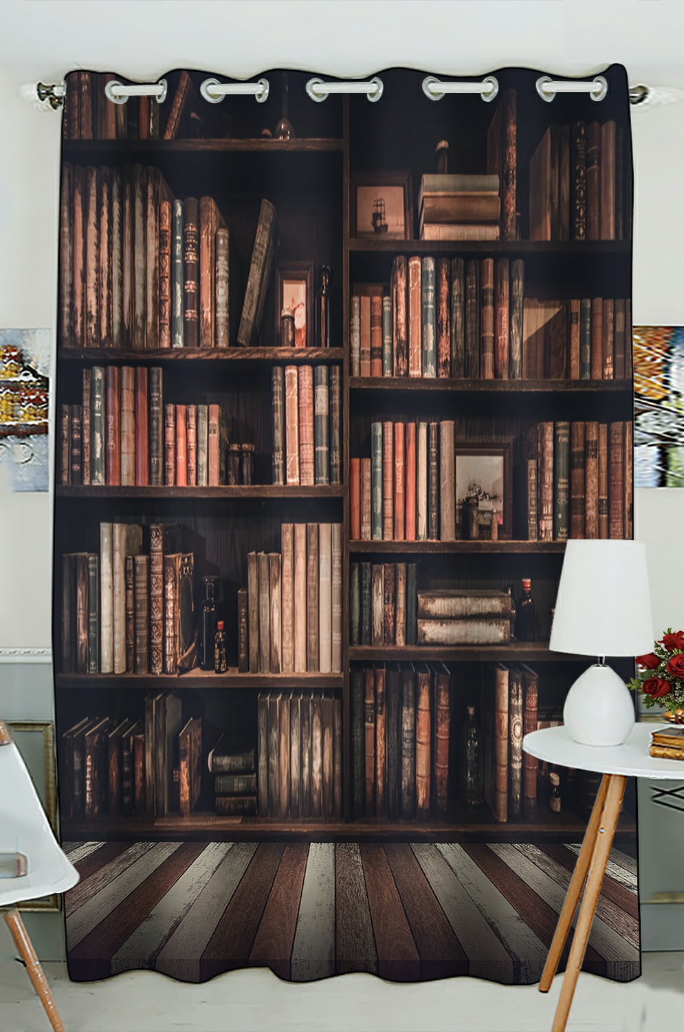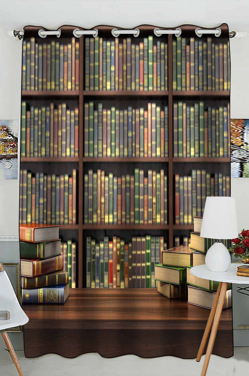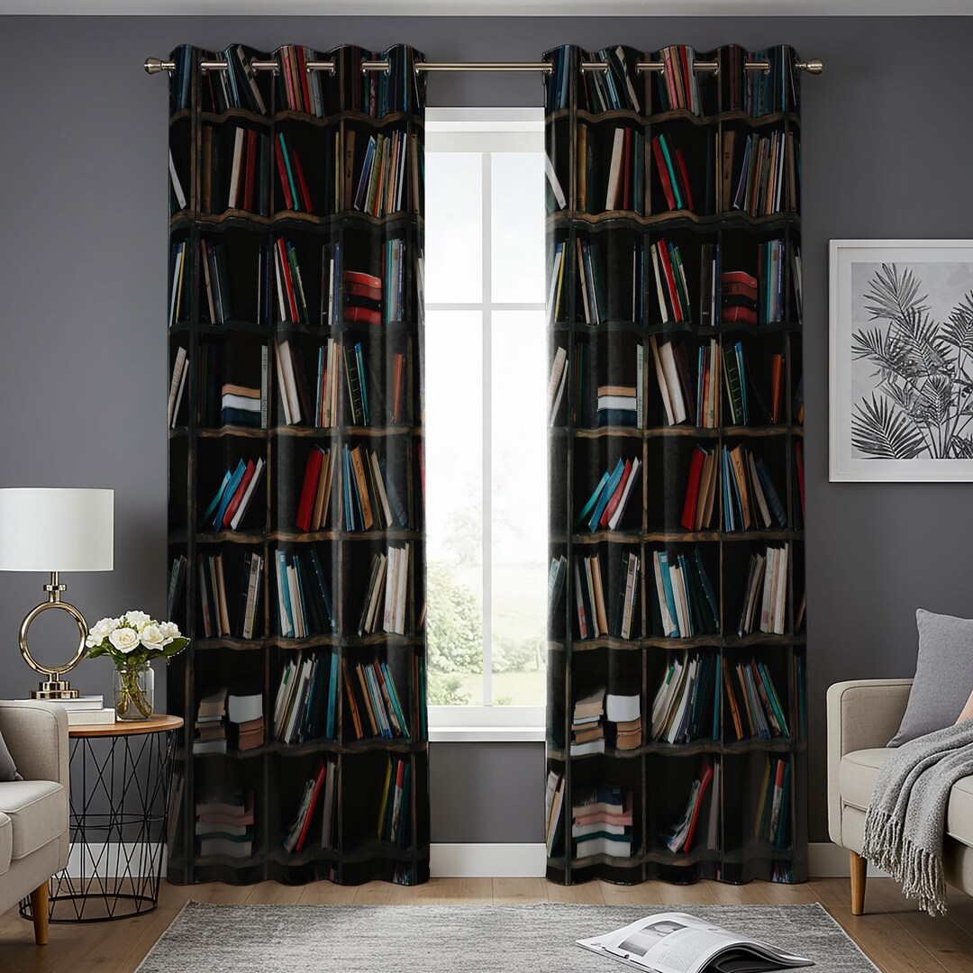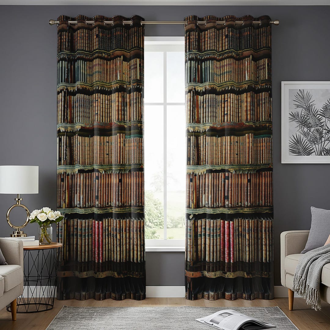 Classic Bookshelf Curtains, Realistic Library Bookcase Print Drapes ...