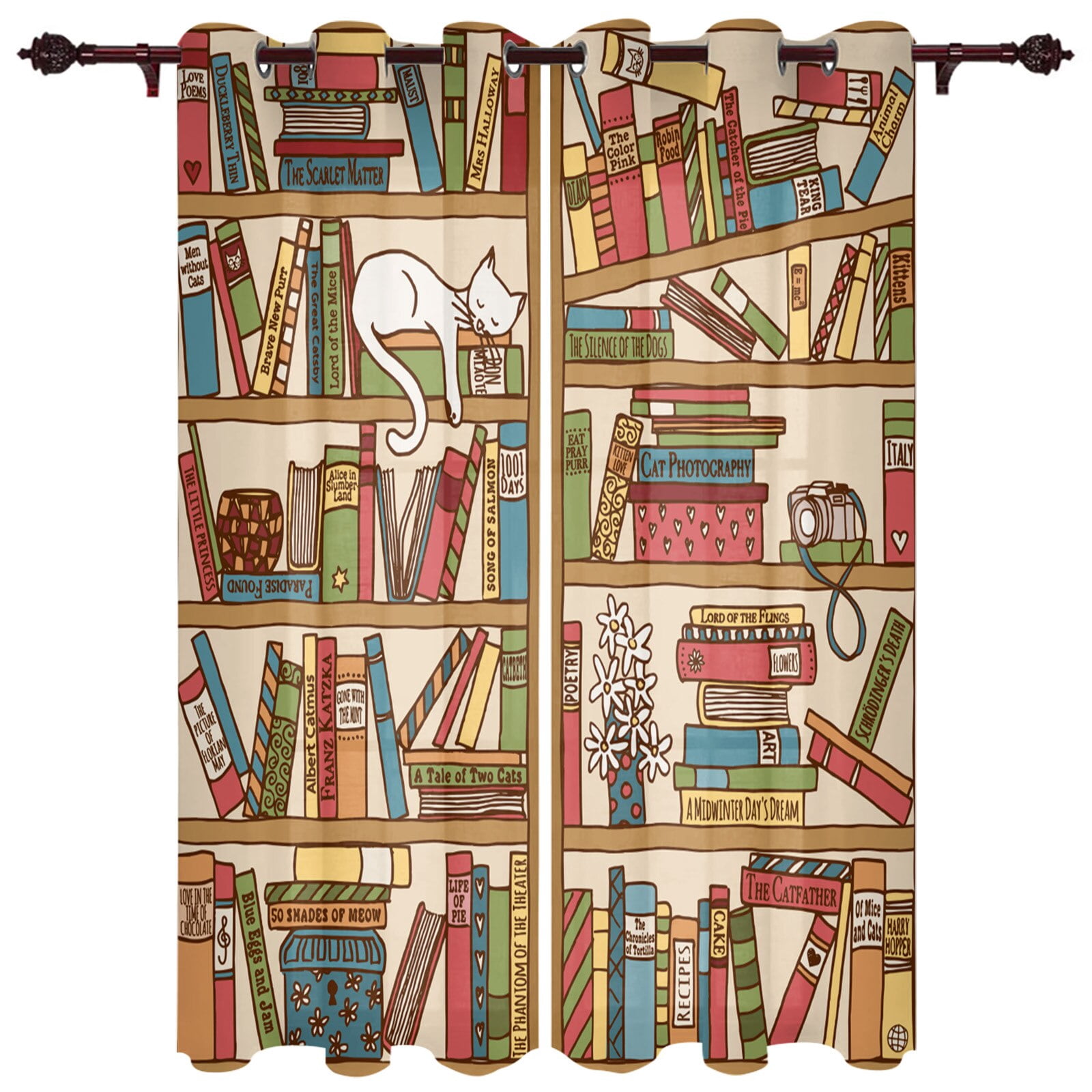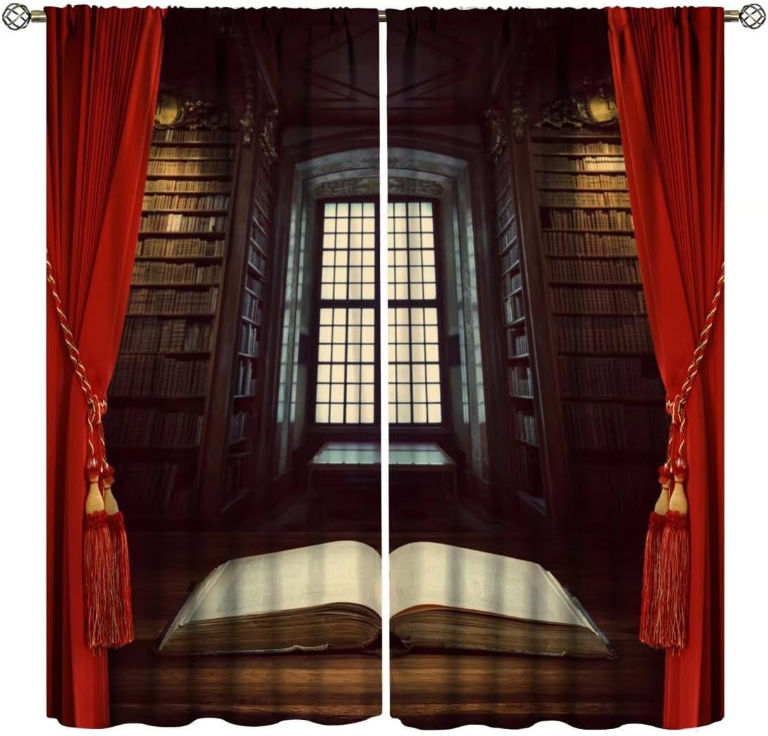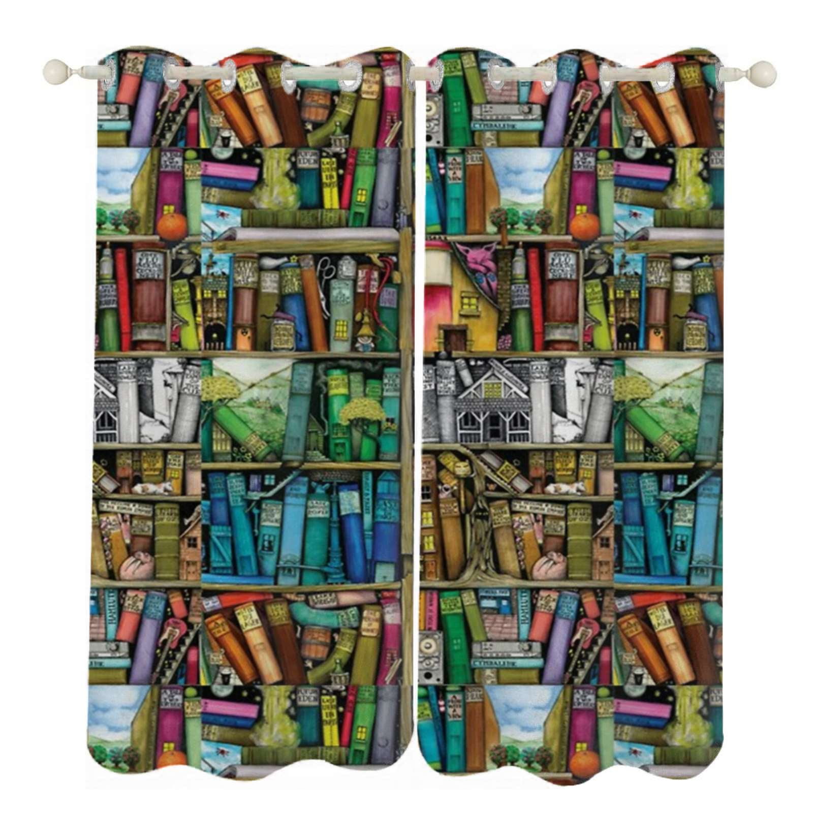 GCKG Neat Bookshelf,Library Blackout Curtains Window treatment Panel ...