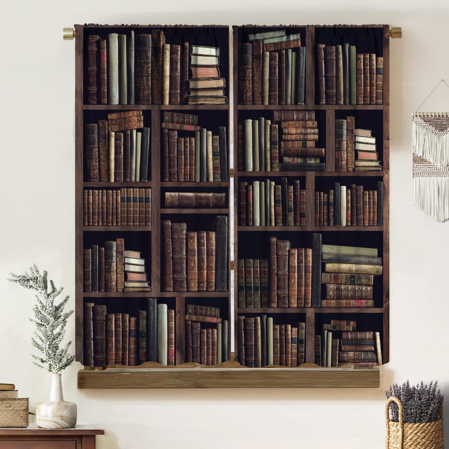 Amazon.com: Bookshelf Curtains, Vintage Library with Books Window ...