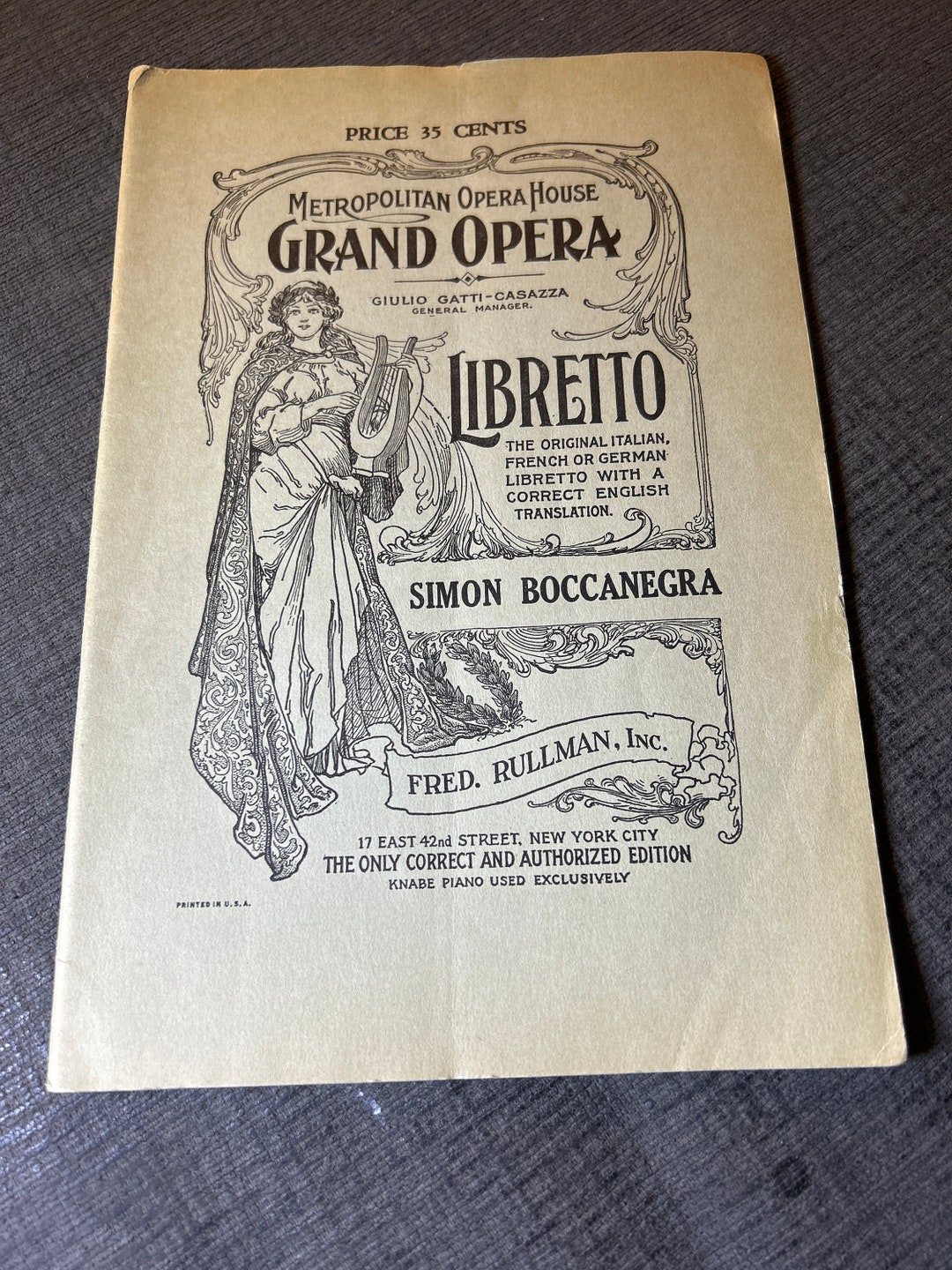 Libretto Metropolitan Opera House “simon Boccanegra” Verdi-1920’s - Etsy
