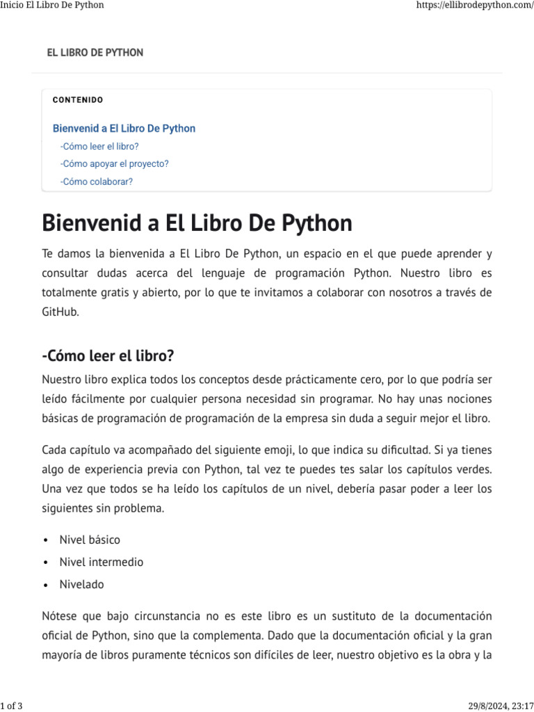 Inicio - El Libro de Python | PDF | Python (lenguaje de programación ...