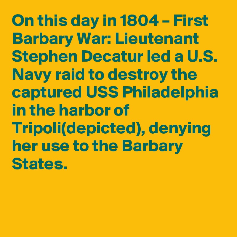 On this day in 1804 – First Barbary War: Lieutenant Stephen Decatur led ...