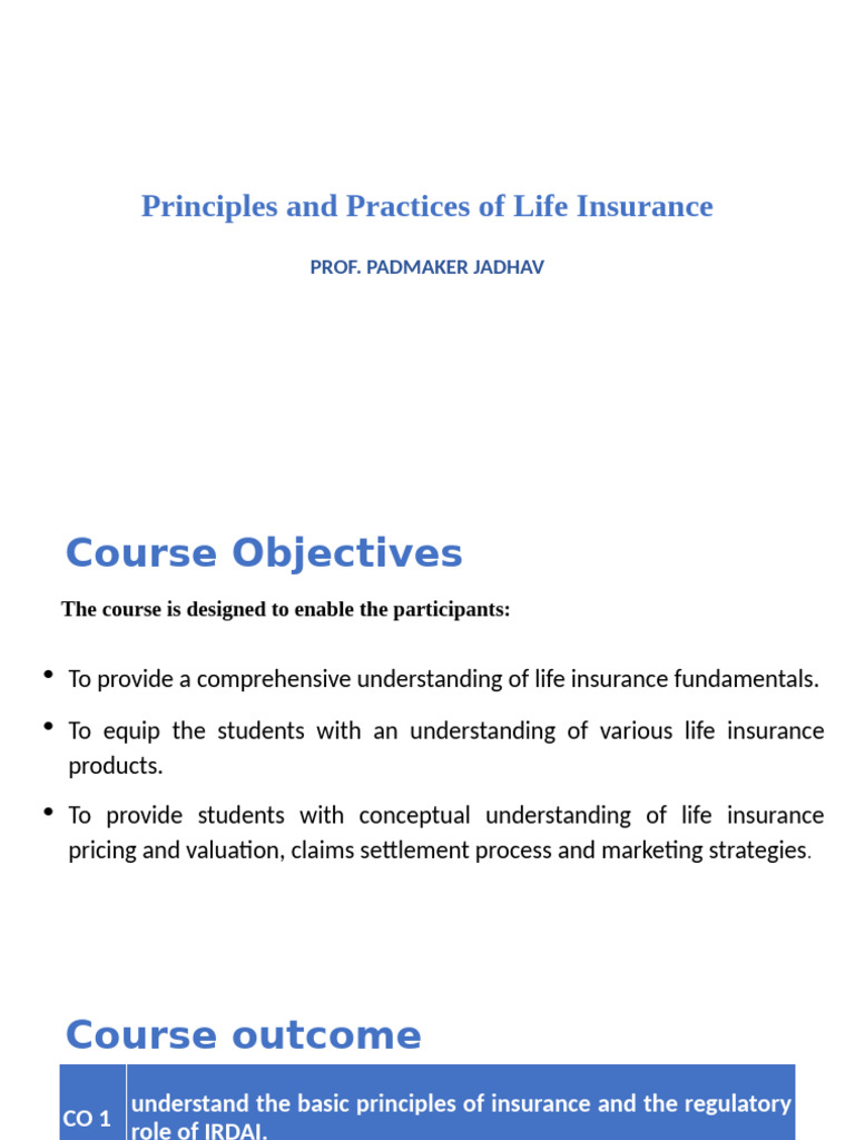 Principles and Practices of Life Insurance 2 Credit 2024 | PDF ...