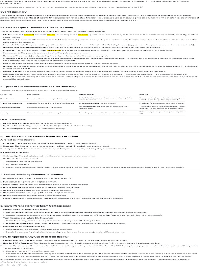 Life Insurance Course Overview and Key Concepts - DeepSeek | PDF ...