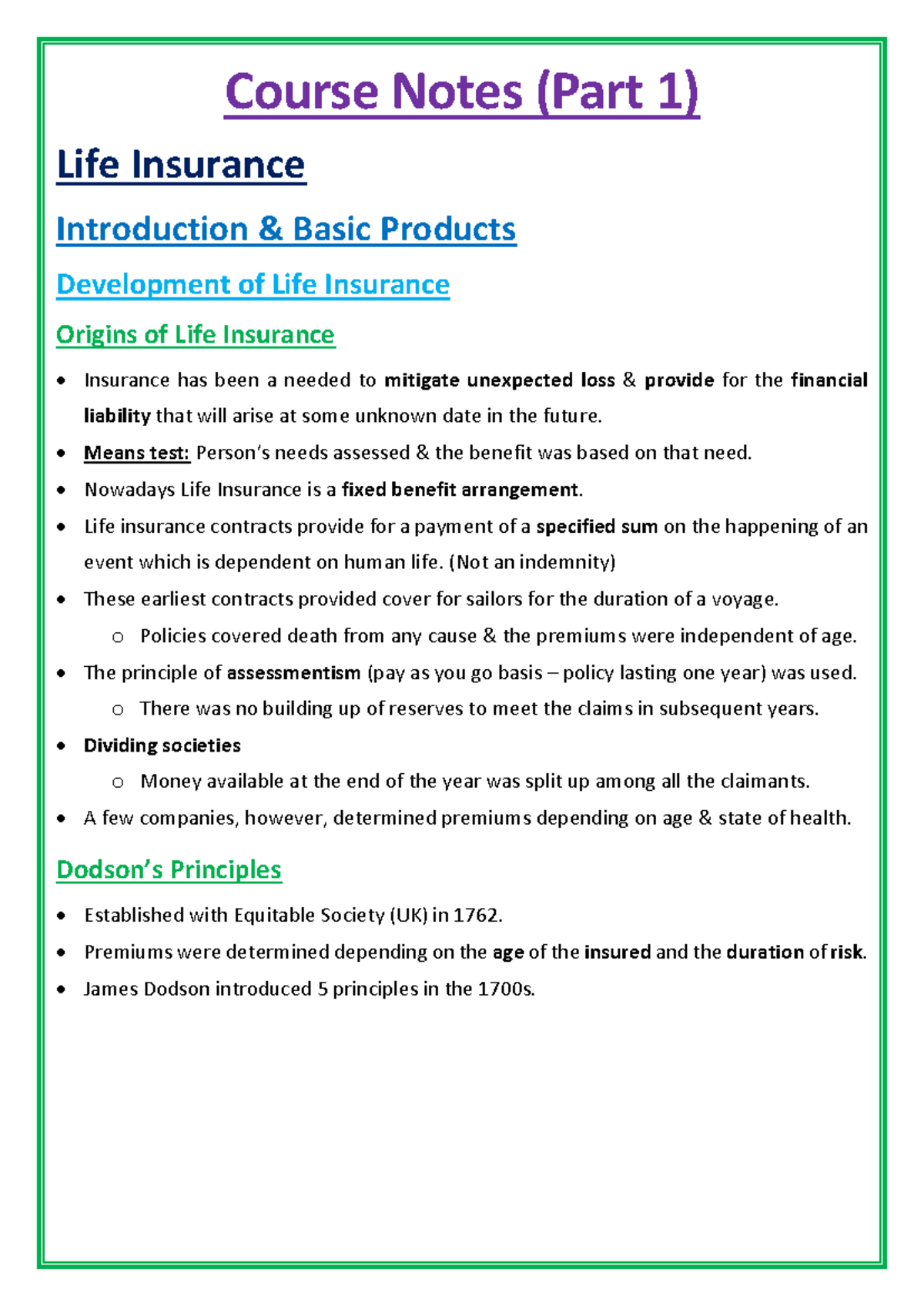 **4. Life Insurance - Course Notes & Key Concepts Summary** - Studocu