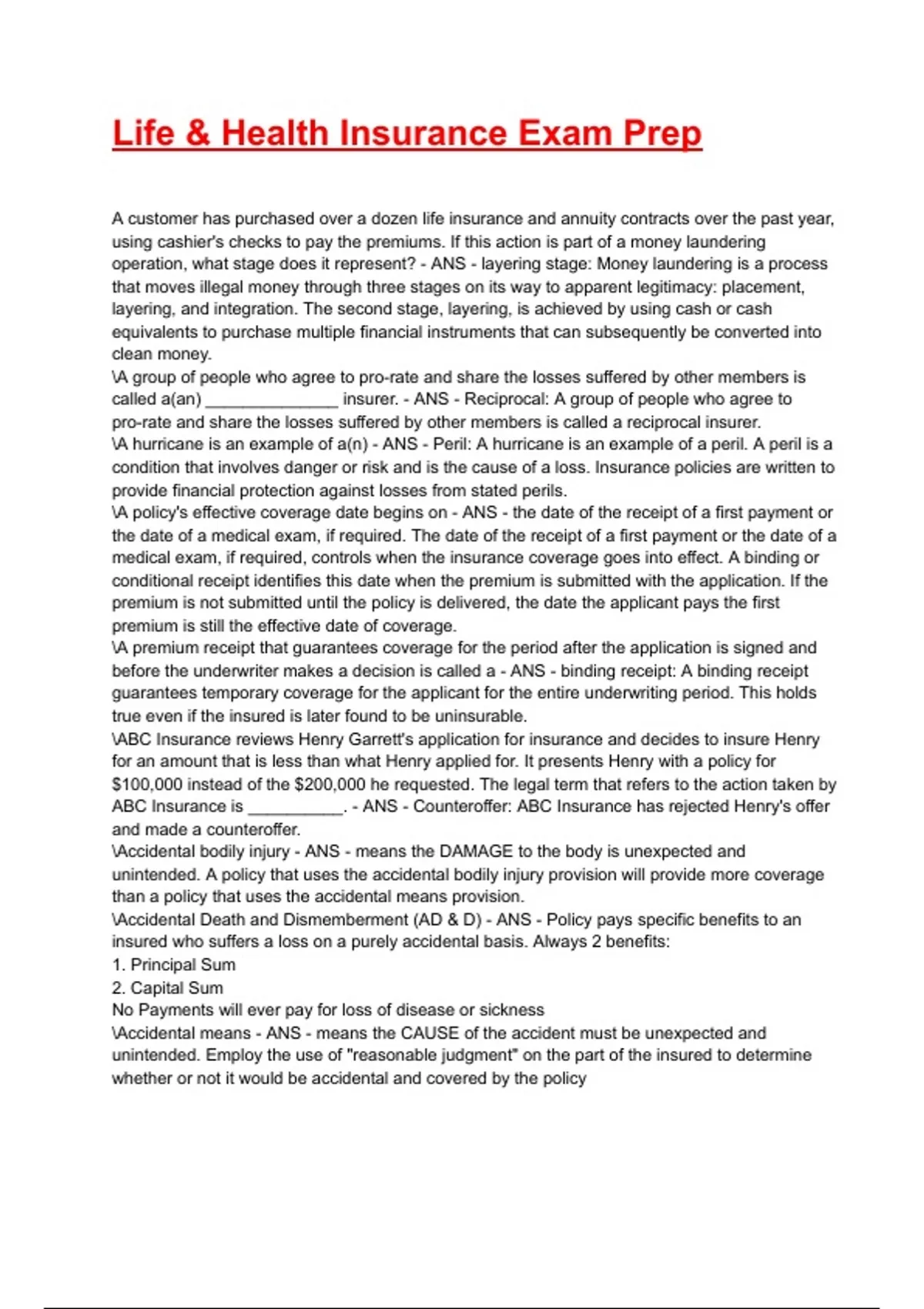 Life & Health Insurance Exam Prep Correct 100% Verified.Guaranteed ...
