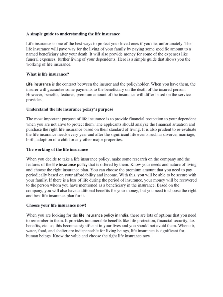 A Simple Guide To Understanding The Life Insurance | PDF | Life ...