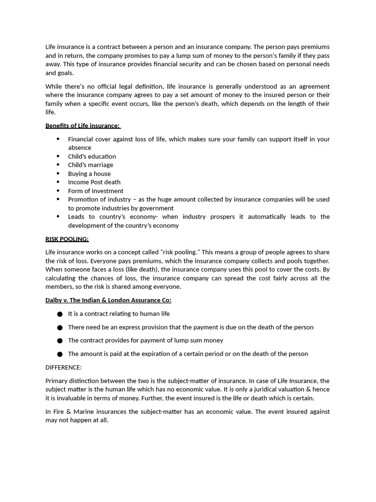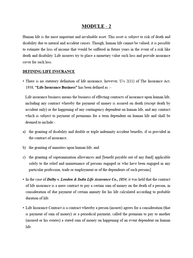 Life insurance - MODULE - 2 Principles of Insurance Notes DIPLOMA IN ...