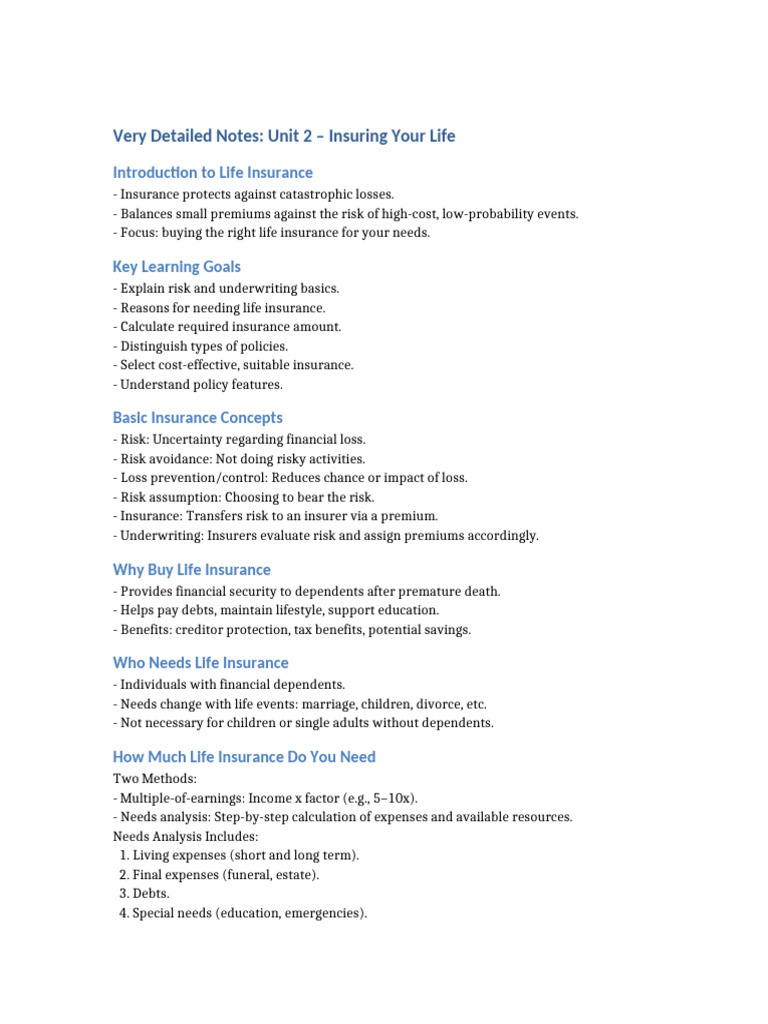Unit 2 Insuring Your Life Detailed Notes | PDF | Insurance | Life Insurance