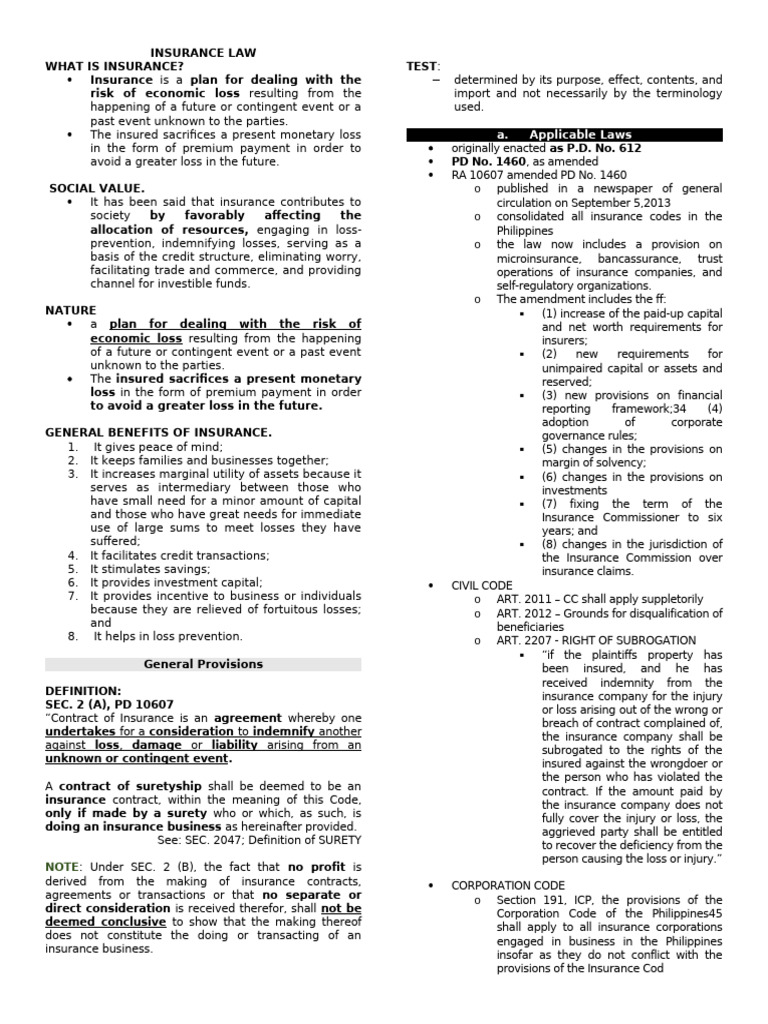 INS21 Basic Notes | PDF | Life Insurance | Liability Insurance
