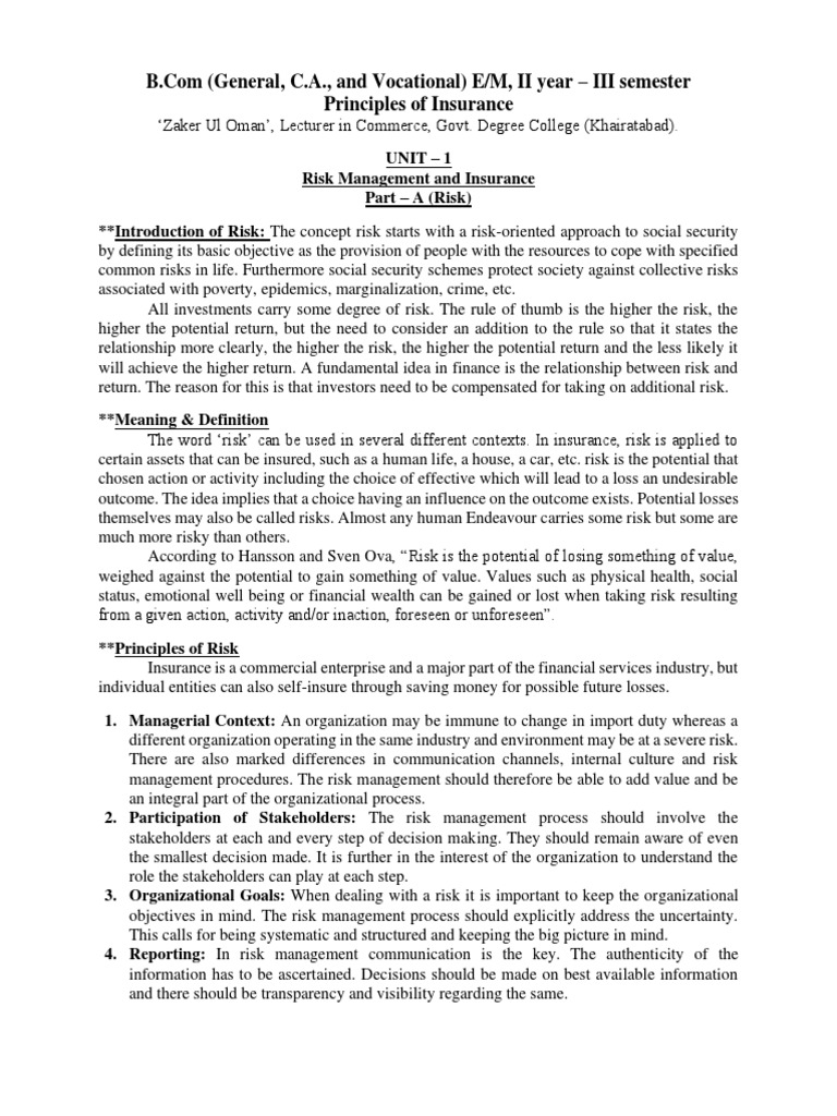 Principles of Insurance (Notes) | PDF | Life Insurance | Insurance