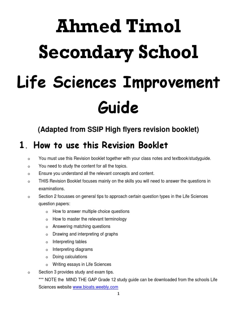 Life Science Study Guideline Grade 12 at Matilda Howard blog