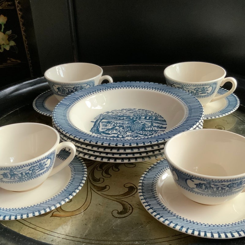 Blue Vintage Dinnerware Set 24 Pcs Dinner Set Dinnerware Set - Etsy