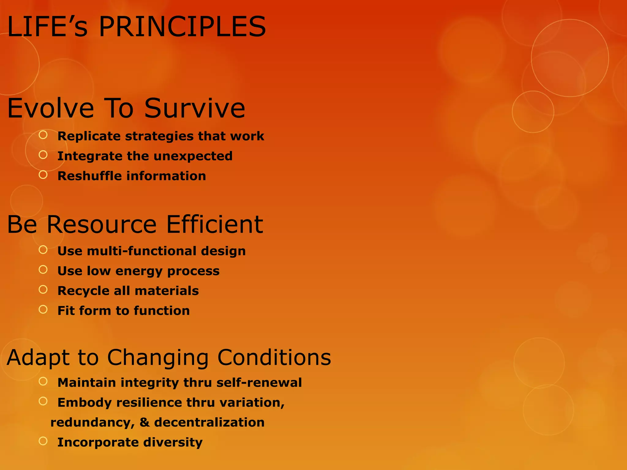 Life Principles Biomimicry | Biomimicry architecture, Self organization ...