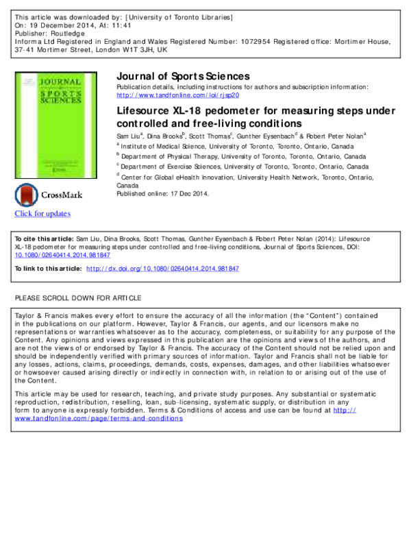 (PDF) Lifesource XL-18 pedometer for measuring steps under controlled ...
