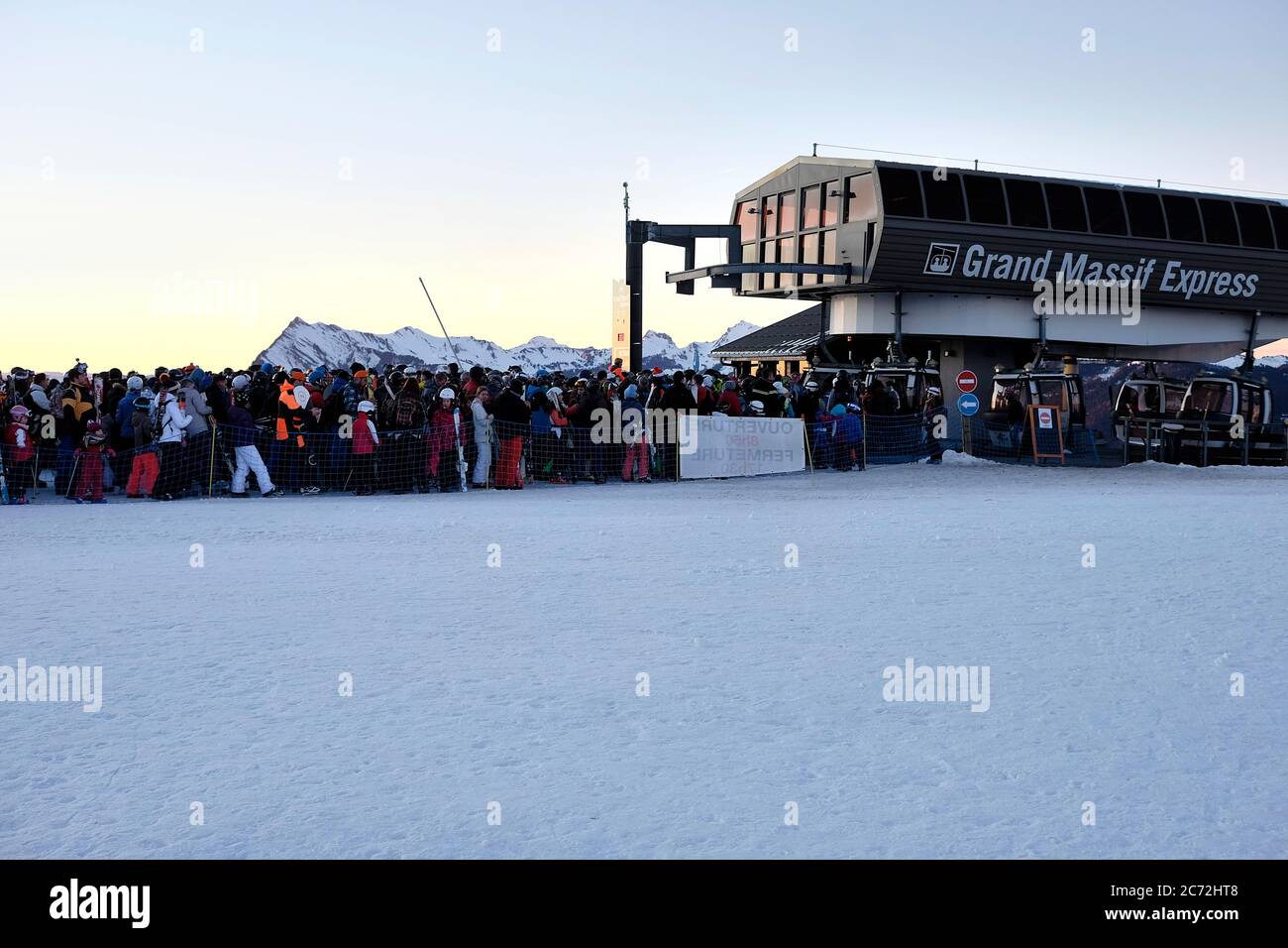 Queue for the Grand Massif Express lift Stock Photo - Alamy