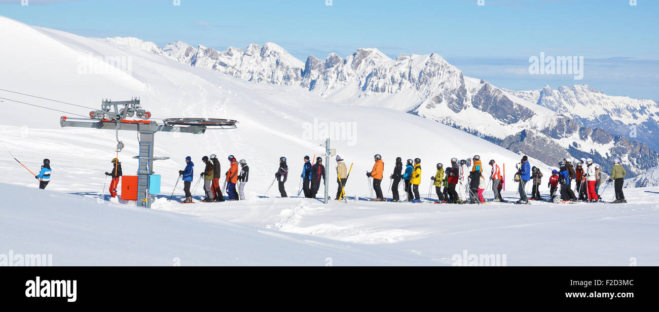 Queue at the ski lift Stock Photo - Alamy