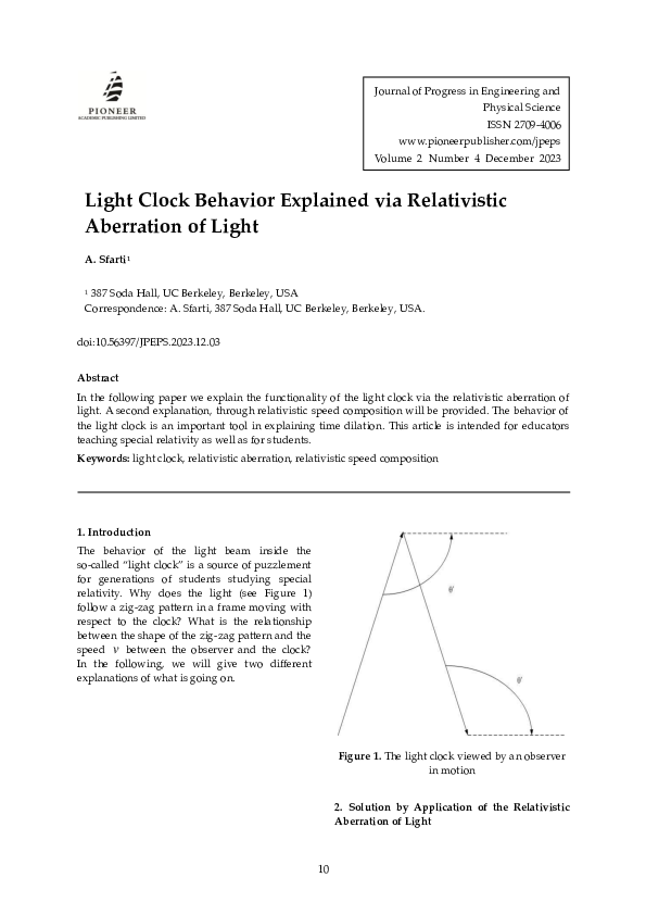 (PDF) Light Clock Behavior Explained via Relativistic Aberration of Light