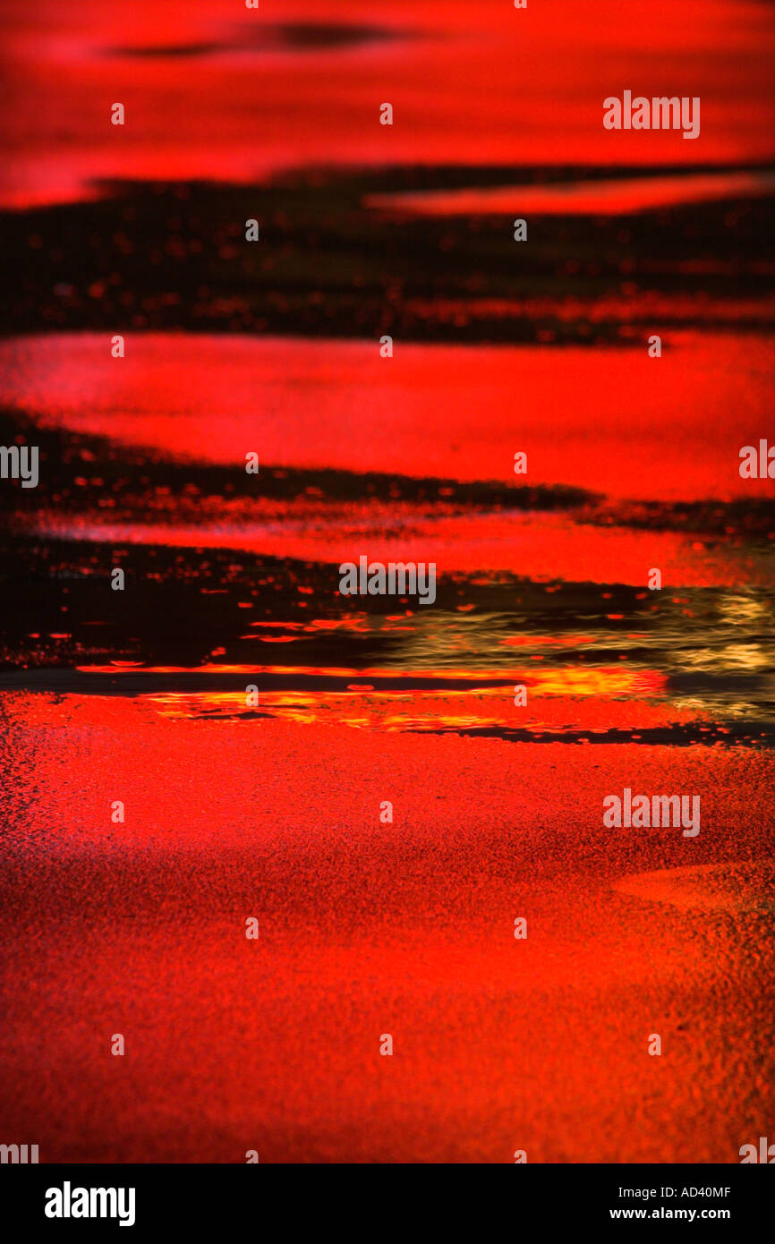 Red coloured lights reflected in wet bitumen Stock Photo - Alamy