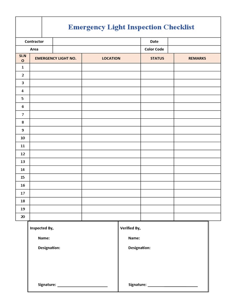 Emergency Lighting and Exit Sign Inspection Checklist for Mobile ...