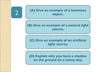 Questions on Properties of Light Give one day-to-day example to prove th..