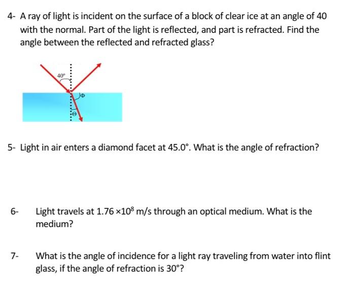 Solved Solve the following problems: 1- A beam of light | Chegg.com