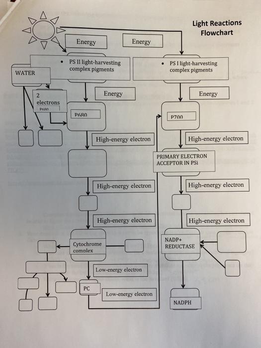 Solved Light Reactions Flowchart Energy Energy PS II | Chegg.com