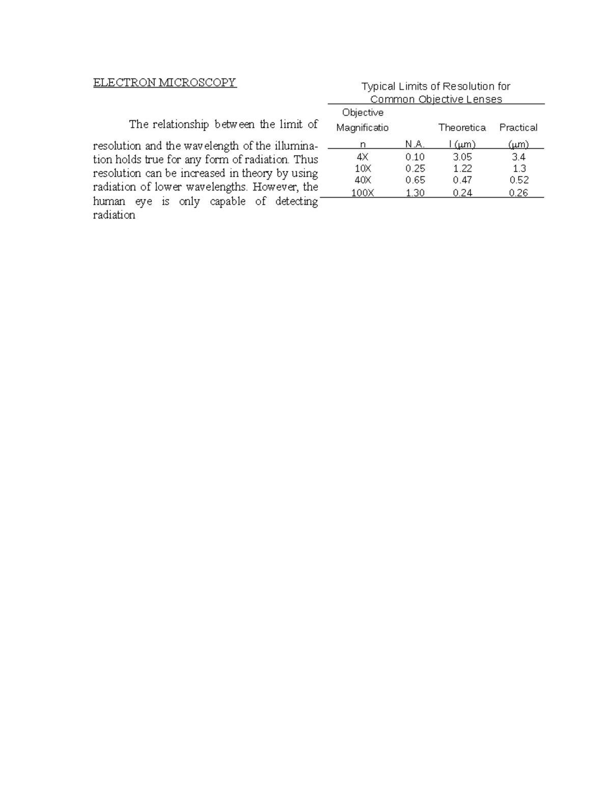 Electron Microscopy - ELECTRON MICROSCOPY Typical Limits of Resolution ...