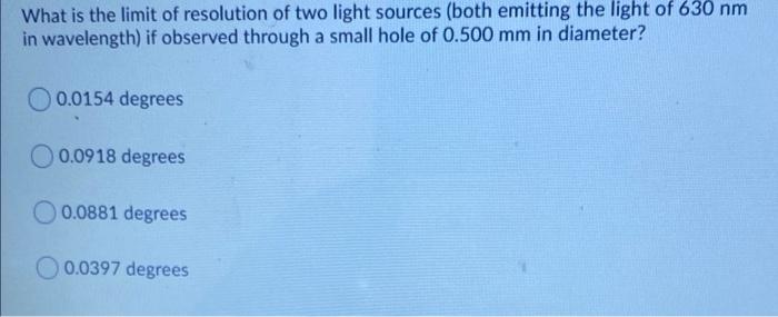 Solved What is the limit of resolution of two light sources | Chegg.com