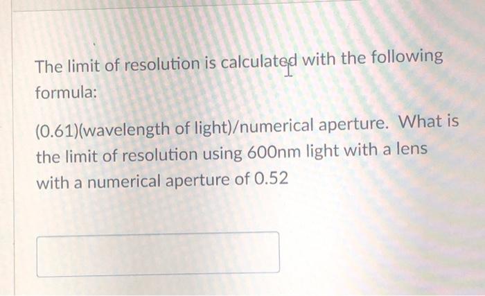 Solved Application: Q2 What is the limit of resolution for a | Chegg.com