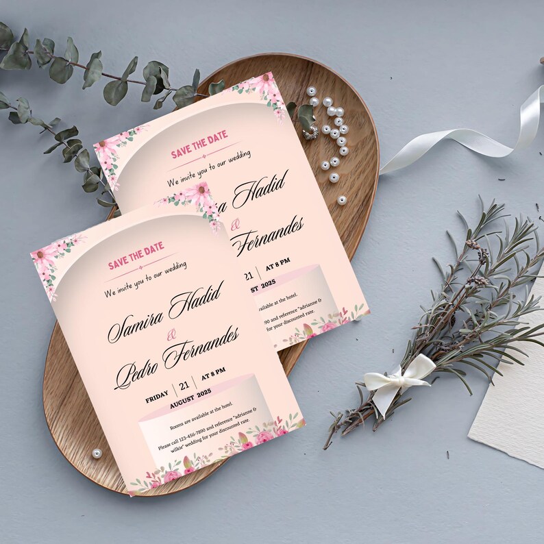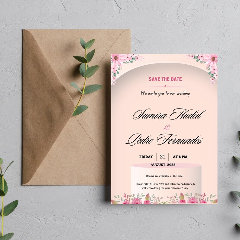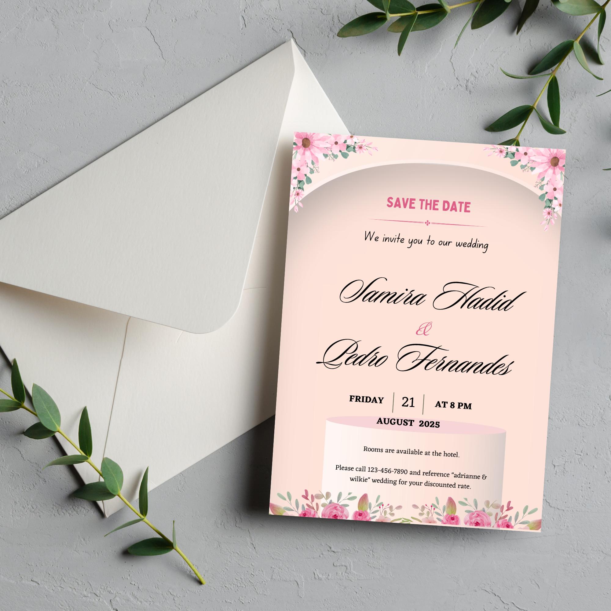 Beautiful pink flower wedding invitation 4674891 Vector Art at Vecteezy