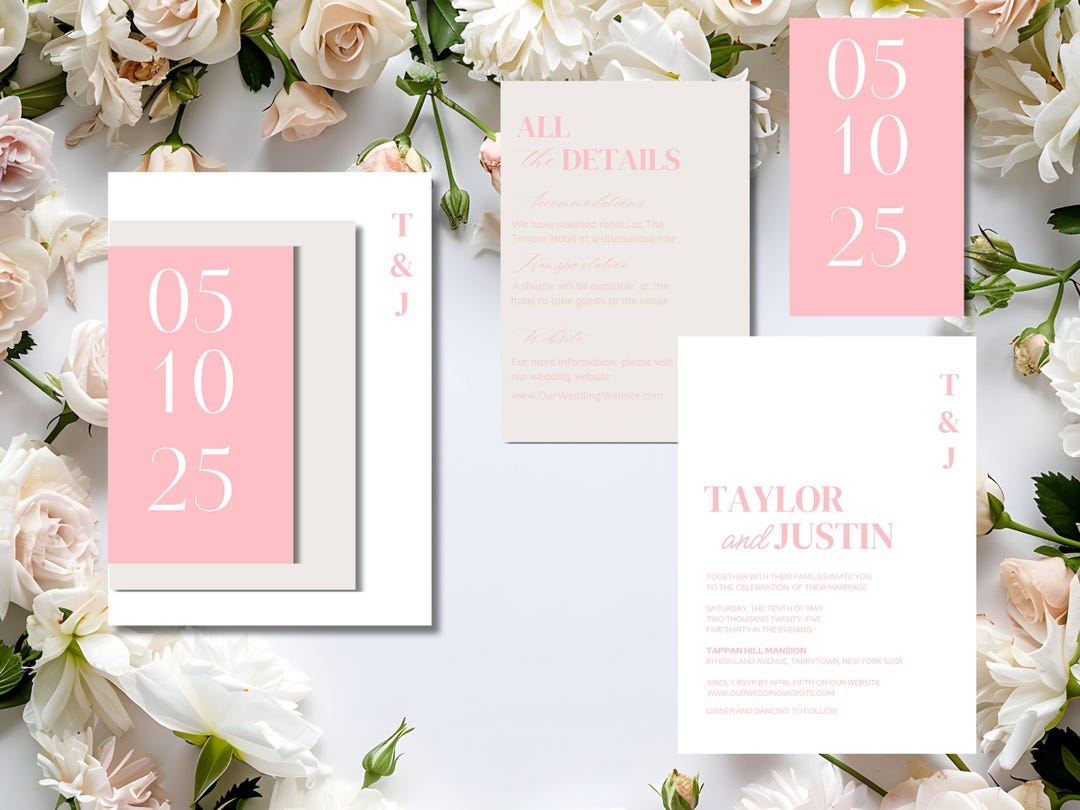 Light Pink Minimal Wedding Invitation Bundle | Classic Layered Invites ...