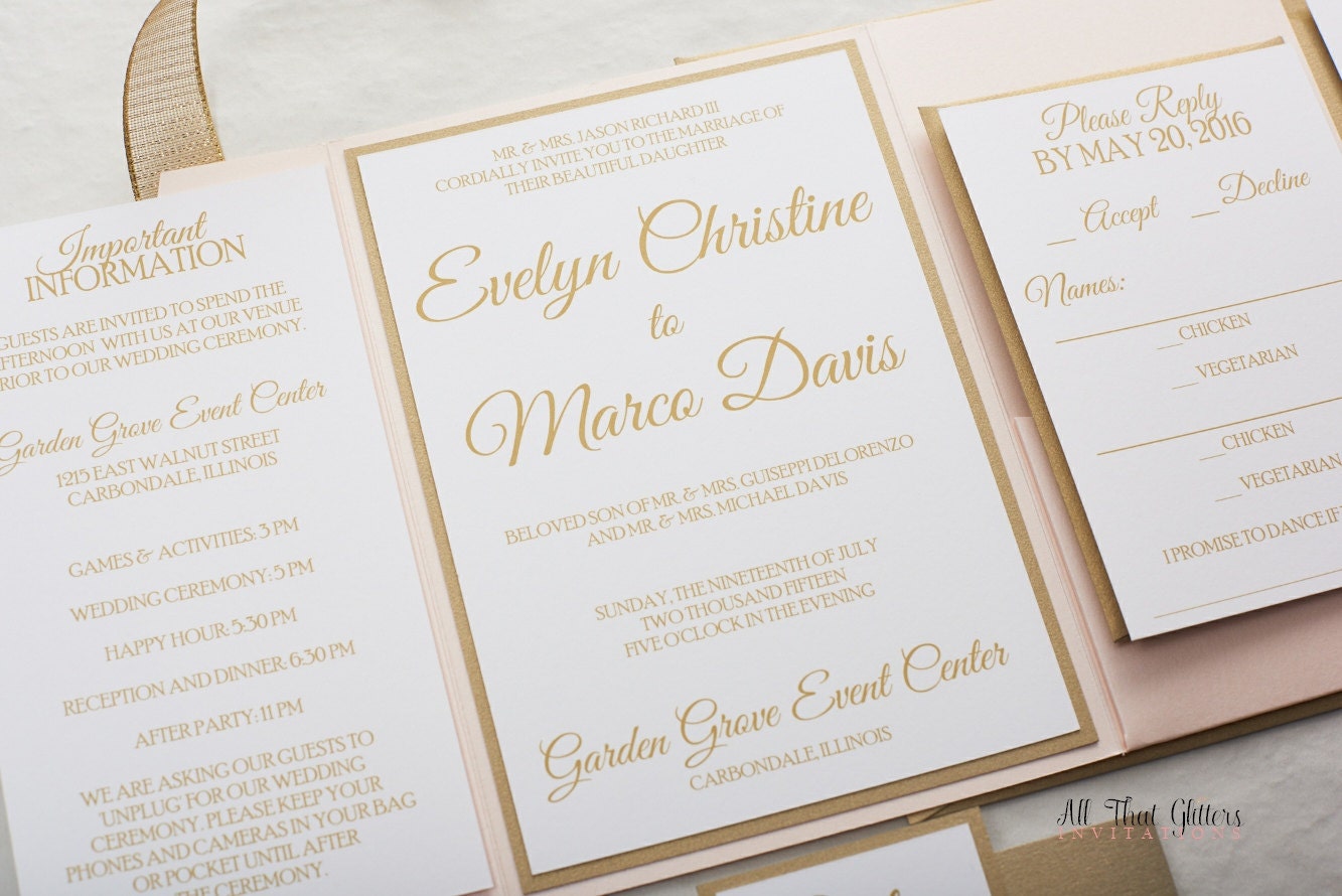 Light Pink Pocket Wedding Invitation Trifold Invitations in - Etsy
