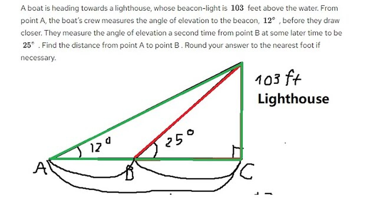 TRIGONOMETRY WORD PROBLEM: Finding Height Of Lighthouse Using Sine Law ...