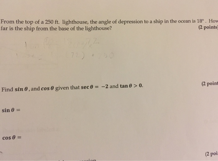 Math - From the top of a 90 m lighthouse, the angle of depression to a ...